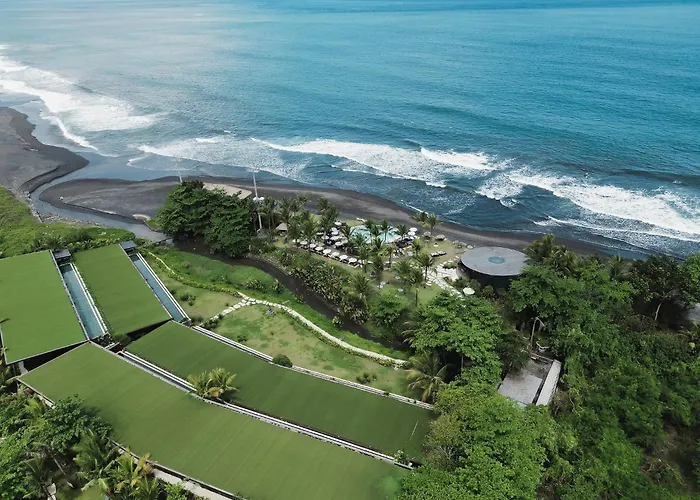 Hotel Komune And Beach Club Bali offers a beachfront experience at the world-famous Keramas surf break, featuring luxurious accommodations and an extensive array of wellness amenities. This 4-star Keramas hotel is equipped with pools, restaurants, and a comprehensive fitness and yoga program.