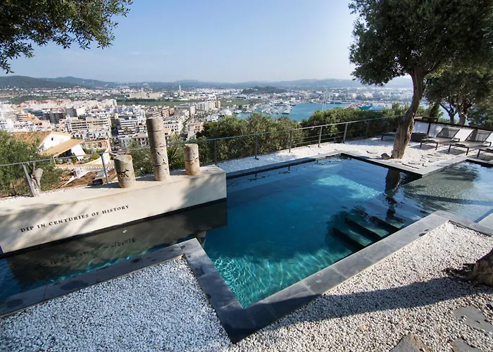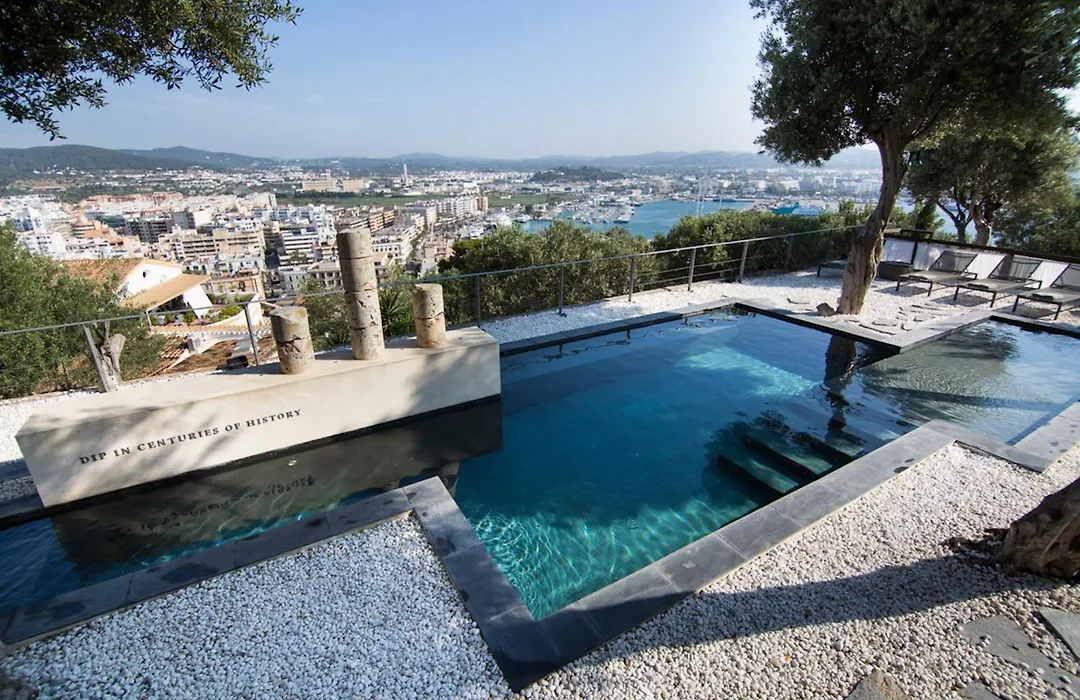 The long outdoor pool is surrounded by a stone terrace and olive trees, providing a tranquil space for relaxation. The hotel also organizes excursions and offers concierge services to explore the area's attractions, such as Ibiza Castle and Ibiza Museum of Contemporary Art.