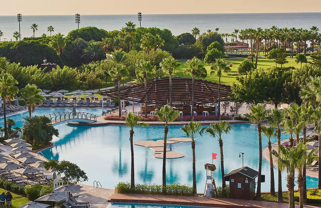 Lara Barut Collection showcases a luxurious experience with its 5-star rating and a Booking.com score of 9.5/10. This Antalya hotel features a private beach, nine outdoor pools, and a variety of dining options, catering to both families and couples.