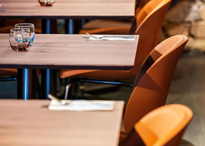 Dining options include the on-site café and bar, with nearby restaurants such as Two Donkeys and the Great Room located just 0.5 km away, providing various culinary choices.