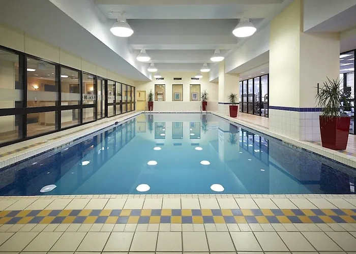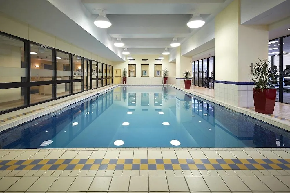 Ottawa Marriott Hotel includes a large indoor heated pool, a fitness center, a Kid's Club, and a games room, catering to families. The hotel's event spaces span 3344.5 m² and include a revolving Summit space offering panoramic views.