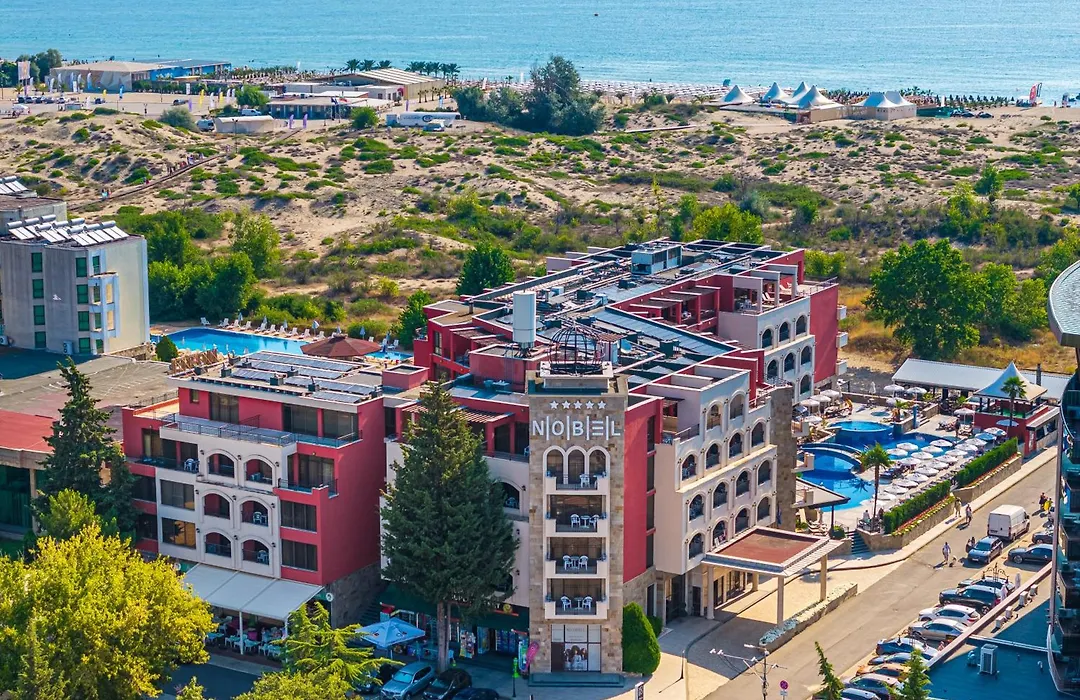Hotel Nobel Ultra All Inclusive - Free Beach Access captivates guests with its elegant design and proximity to stunning sand dunes and the beach. This 5-star Sunny Beach hotel provides an array of amenities, including free Wi-Fi, a private beach area, and spa facilities.