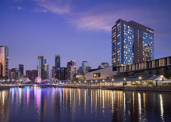 Pan Pacific Melbourne, a 5-star hotel rated 9.0/10 on Booking.com, features luxurious accommodation with panoramic views of the city. The hotel includes a dedicated concierge team and access to a fitness center with Precor equipment.