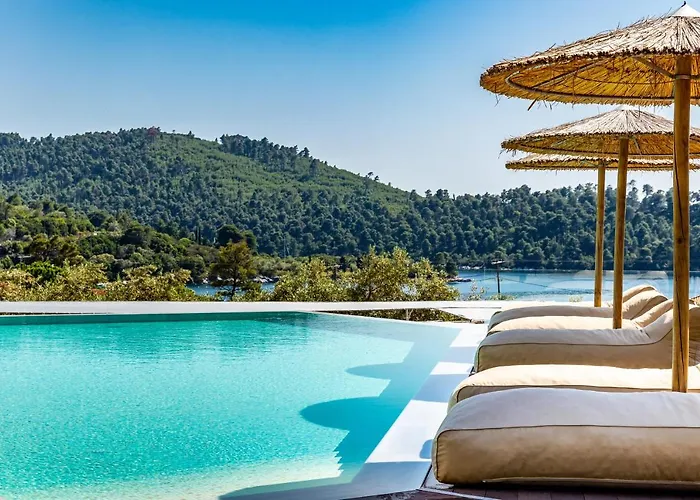 Panormos Beach Hotel Skopelos, rated 9.2/10 on Booking.com, offers air-conditioned rooms with furnished balconies overlooking the Aegean Sea or hotel gardens. This family-friendly hotel features a seasonal outdoor pool and common spaces adorned with traditional details like antique furniture.