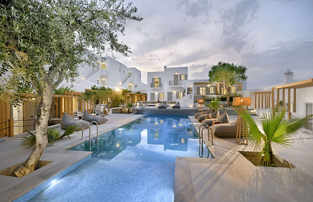 Located steps from Platis Gialos Beach, guests can enjoy sunbathing, water sports, and nearby beach bars such as Nammos and Scorpios. The hotel also offers tailored tours and activities, ensuring memorable experiences during your stay.