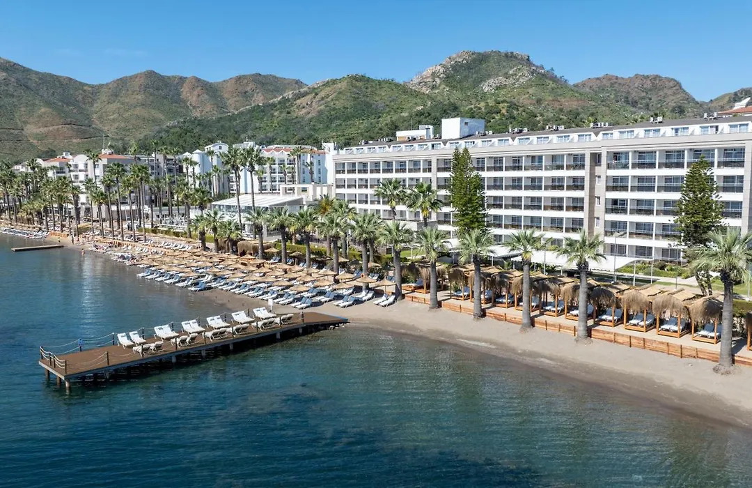 Prime Beach Hotel offers 5-star accommodations complemented by a large outdoor swimming pool and wellness facilities. This Marmaris hotel features a diverse range of dining options and recreational activities, making it suitable for families.