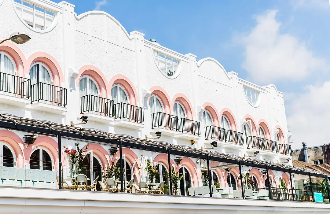 Hotel Ravesis, a 4-star Sydney hotel rated 8.6/10 on Booking.com, is prominently located on Bondi Beach with uninterrupted ocean views. The property features a restaurant, three bars, and luxurious beachfront accommodations, providing a vibrant coastal hospitality experience.