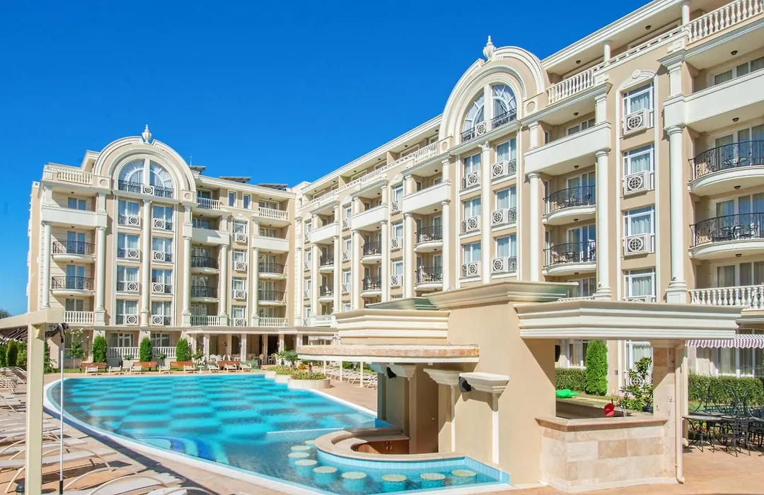 Rena Hotel is a 4-star Sunny Beach hotel rated 8.6 on Booking.com, featuring an outdoor pool and a water slide. Amenities include free WiFi, air-conditioned units with kitchenettes, and convenient dining options nearby.