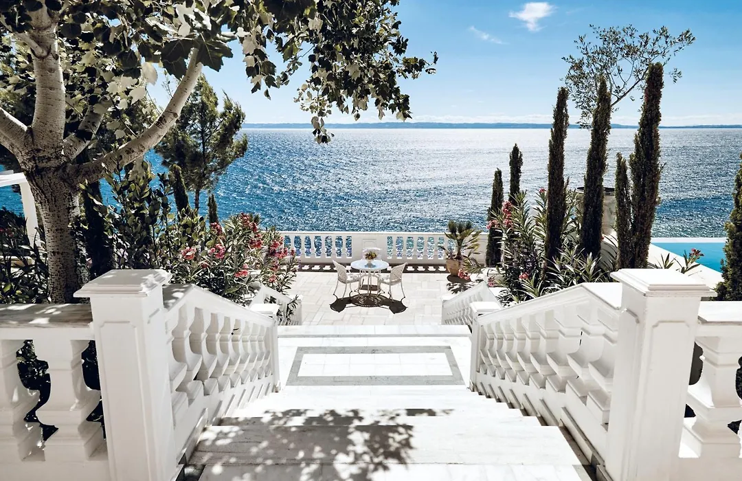 Dining options feature three restaurants: 'The Squirrel' for gourmet cuisine, 'Andromeda' for fine dining, and 'Anithos' for modern Greek dishes. Guests can enhance their meals with selections from one of Europe's largest wine collections housed in the dedicated cellar.