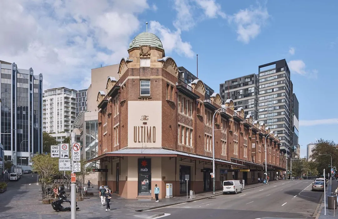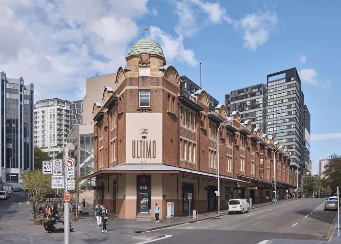 The Ultimo showcases modern accommodations within a historic heritage-listed building in Haymarket. This 4-star Sydney hotel features 95 rooms including spacious studios with king beds and pet-friendly options. Amenities include a communal laundry-room, snack vending machines, and secure undercover parking nearby.