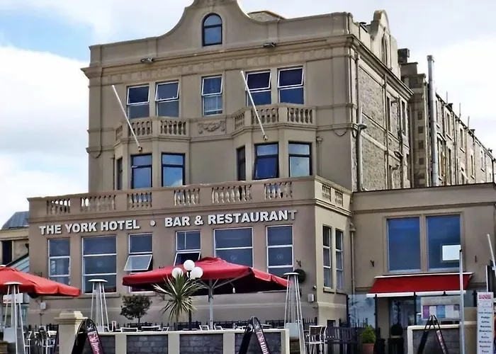 The York Hotel, a 3-star Weston-super-Mare hotel with a rating of 7.8/10 on Booking.com, features stunning sea views and a stylish restaurant serving traditional home-cooked food. Guests can enjoy a chic wine bar, spacious accommodations, and a terrace with panoramic views over the bay.