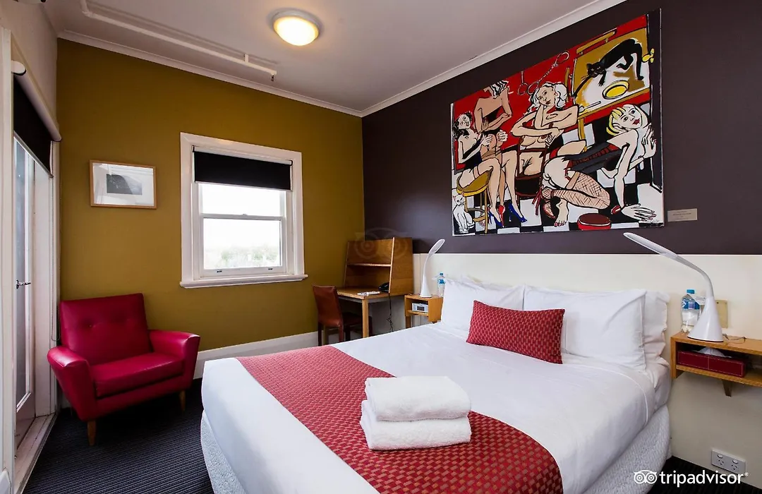 Tolarno Hotel, a 4-star hotel, features vibrant rooms and an on-site fine-dining restaurant, Bergerac at Tolarno. Located in St Kilda, it offers easy access to Melbourne's CBD and is suited for both leisure and business travelers.