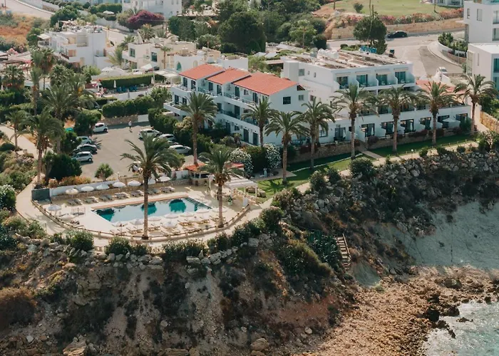 Vrachia Beach Hotel & Suites - Adults Only is a 3-star Kissonerga hotel with a booking.com rating of 8.9/10. It offers superior accommodations with stunning Mediterranean Sea views, a main restaurant, and several relaxation options.