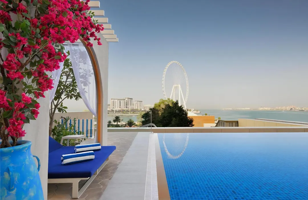 JA Ocean View Hotel, Jumeirah Beach Dubai offers beach access, an infinity pool deck, and six dining options. This 5-star hotel has a Booking.com rating of 8.8/10, making it a prominent destination along JBR The Walk.