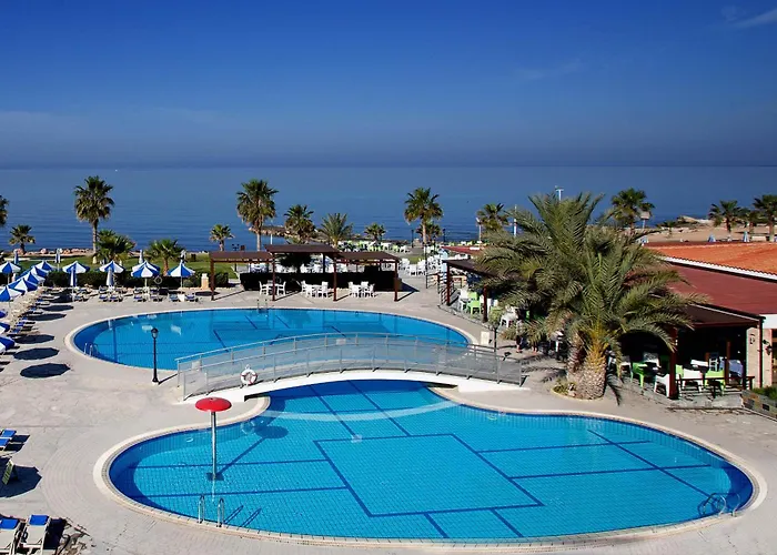 Kefalos Beach Tourist Village offers family-friendly accommodations along a prime beachfront area, featuring a large pool complex and a range of modern facilities. This 4-star Paphos hotel is rated 8.6/10 on Booking.com, making it a favored destination for leisure travelers.