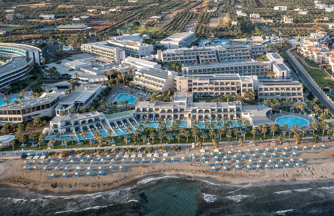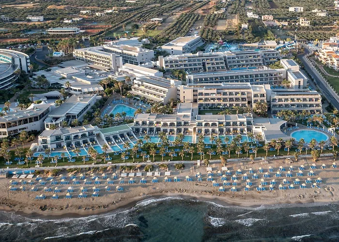 Experience the warm Cretan hospitality at Lyttos Beach, a premium all-inclusive 5-star beach resort in Hersonissos. This Anissaras hotel offers a vast family water park, multiple dining options, and a plethora of sports facilities set against the stunning backdrop of the Cretan Sea.