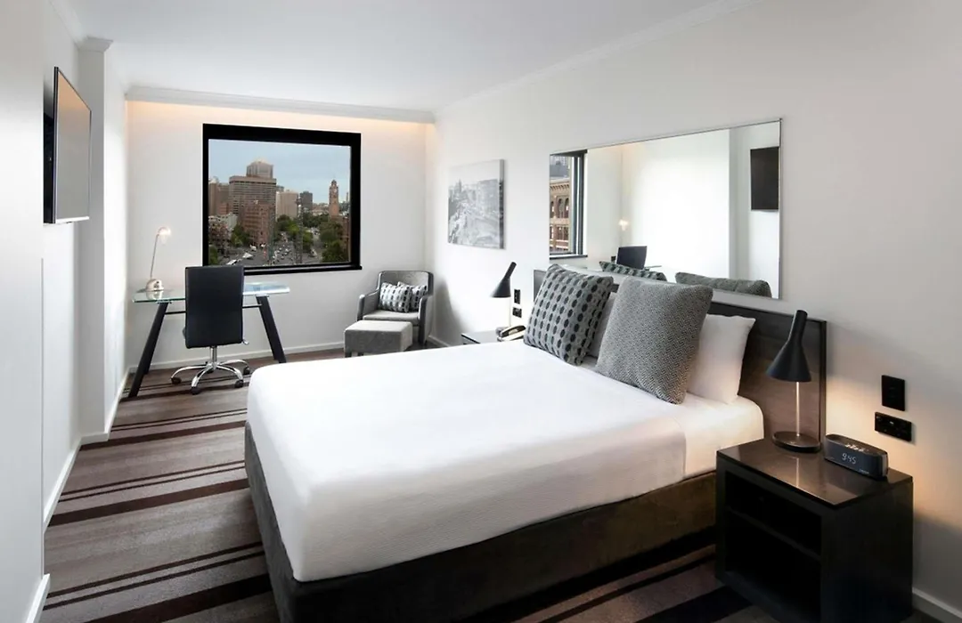Mercure Sydney, a 4-star hotel rated 8.3/10 on Booking.com, features modern rooms and an indoor rooftop pool. The establishment includes a fitness center, sauna, and a variety of dining options.