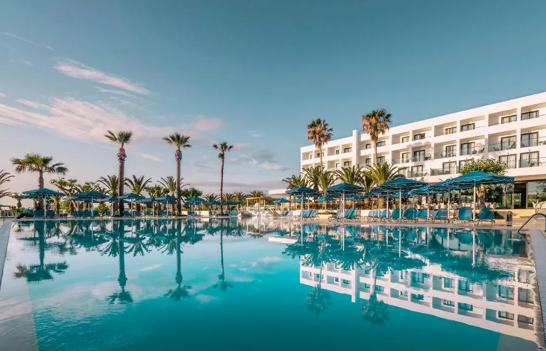 Mitsis Faliraki is a 5-star ultra-all-inclusive beach hotel offering family-friendly accommodations with a wide sandy beach and 20 freshwater pools. Amenities include 7 restaurants, 3 bars, and a variety of activities for guests of all ages. The hotel holds an 8.8/10 rating on Booking.com.