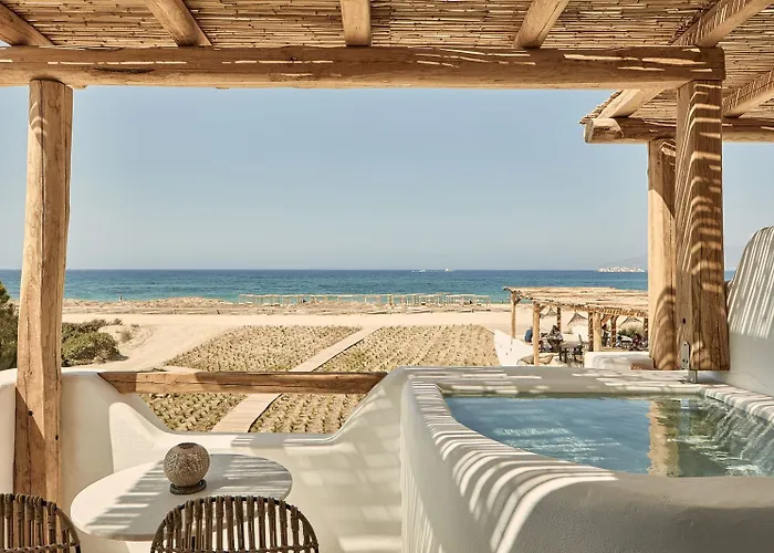 Naxian On The Beach (Adults Only) boasts a beachfront location with direct access to Plaka Beach. This 3-star Maragkas hotel provides free WiFi and features a beach bar, outdoor seating area, and complimentary sunbeds.