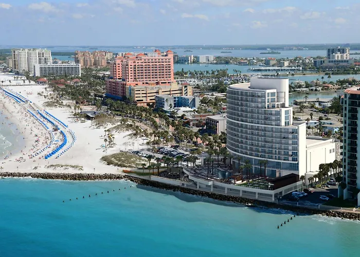 Opal Sands, a 4-star Clearwater Beach hotel with an 8.9/10 rating on Booking.com, features luxury accommodations and direct beachfront access. Guests can enjoy two full-service Opal Spas, four outdoor pools, and ten dining options across connected resorts.