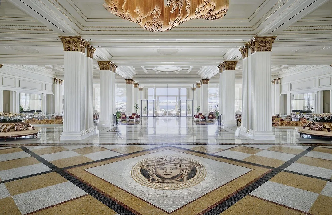 The hotel features 215 hotel rooms and suites adorned with exclusive Versace furnishings, each equipped with a flat-screen TV, mini-bar, and spacious bathroom with handcrafted mosaic tiling. The 3-bedroom Royal Versace Villa spans up to 400 m², showcasing luxurious design elements and views overlooking the hotel pools and the Creek.