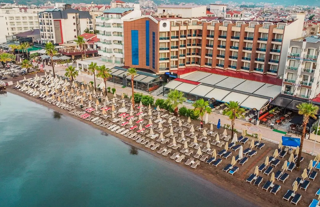Point Beach Hotel features a garden area and a sun terrace for relaxation. Popular points of interest include Marmaris Merkez at 0.5 km, Marmaris Castle at 2 km, and AquaDream Water Park at 2 km.