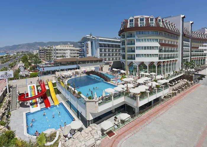Asia Beach Resort & Spa Hotel, a 5-star property rated 7.7/10 on Booking.com, features an all-inclusive concept with numerous amenities, including a spa center, indoor and outdoor pools, and a private beach area. This family-friendly Alanya hotel offers entertainment options as well as dining experiences across its multiple restaurants.