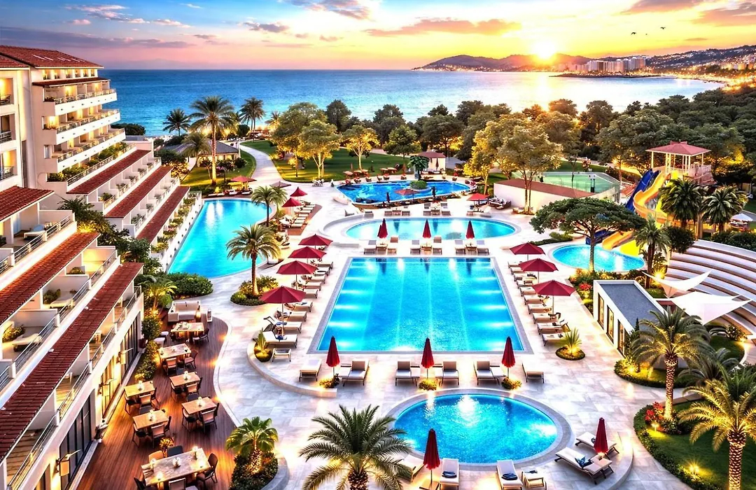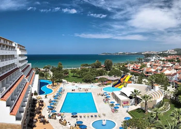Batihan Beach Resort & Spa is approximately 7 km from Kusadasi's tourist center, hosting a variety of shops and cafes. The hotel features a 24-hour reception and offers transportation options such as local bus services for easy access to nearby attractions.