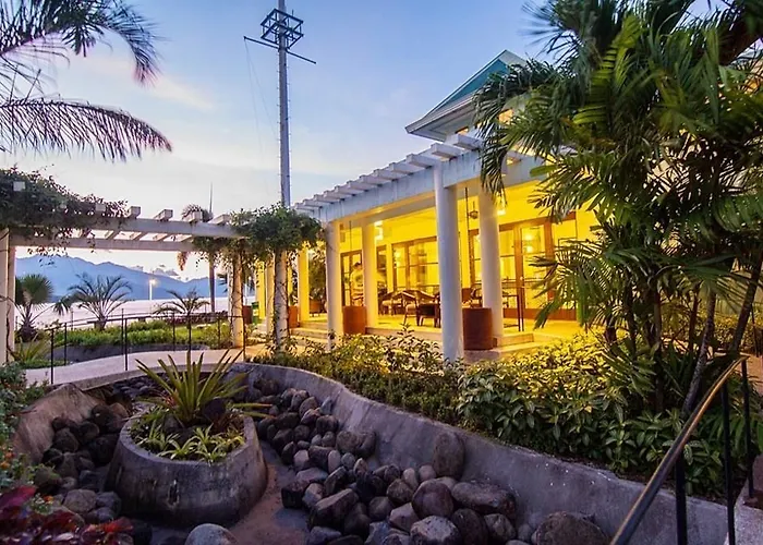 Camayan Beach Resort features Superior Rooms designed with sustainable indigenous materials, providing views of the gardens or bay, along with modern amenities such as cable TV and coffee-making facilities. The resort also includes the Sunset Bar, providing sweeping views of Subic Bay.