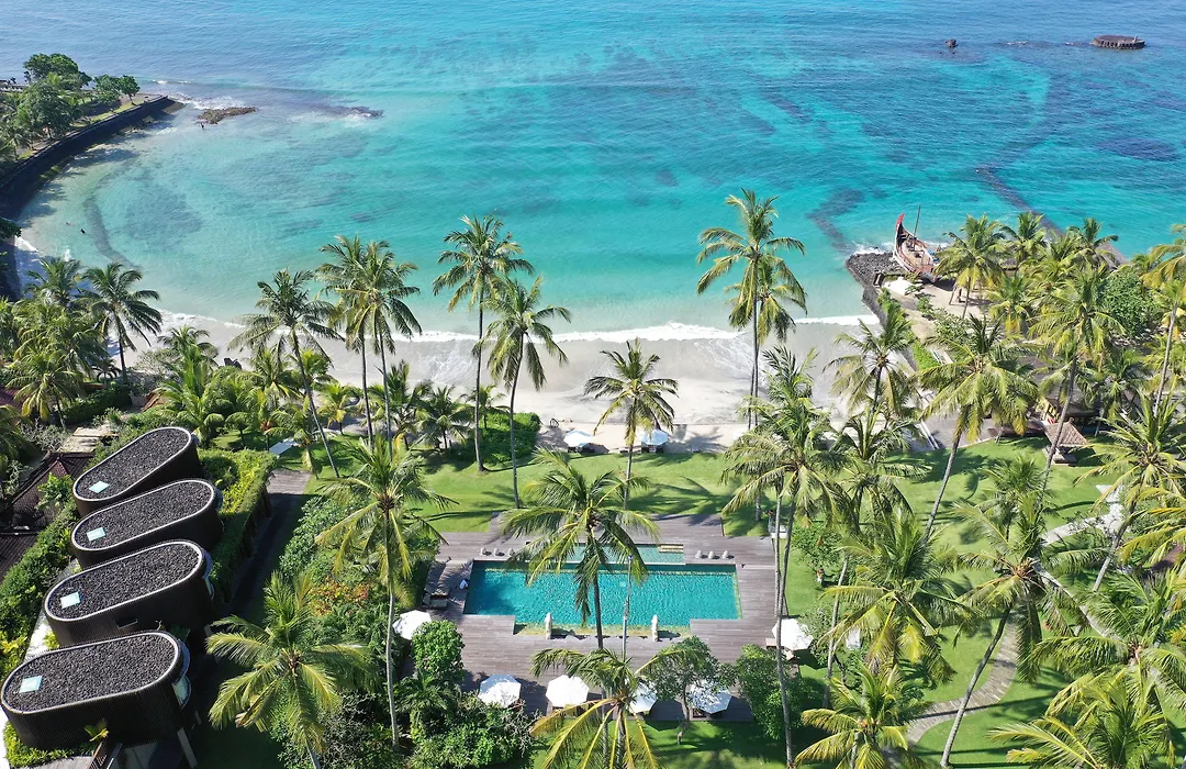 Candi Beach Resort & Spa features a beachfront location set within a coconut grove garden, emphasizing tranquility and natural beauty. This 4-star Candi Dasa (Bali) hotel offers wellness treatments, distinctive dining experiences, and various accommodation options including luxury pool villas.