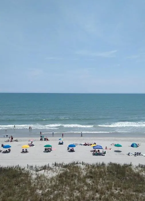 Caravelle Resort, a 3-star Myrtle Beach hotel with a 5.8/10 rating on Booking.com, features an extensive block-long poolscape and multiple dining options. The resort is located on the Golden Mile, providing easy access to top attractions and the beach.