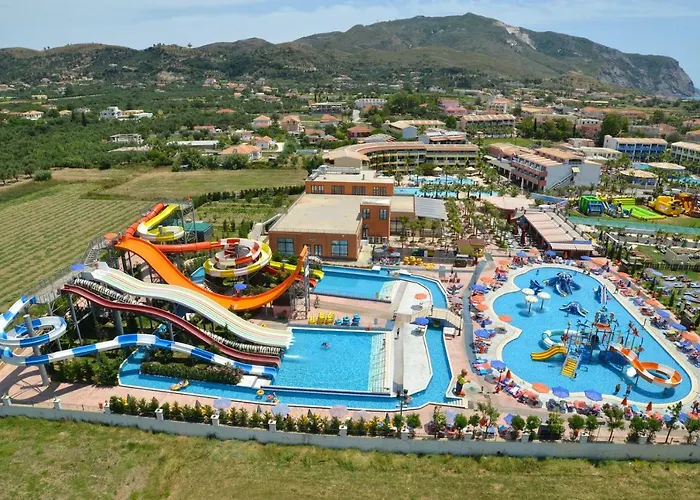 Caretta Beach Resort & Waterpark offers a modern family-friendly experience with comprehensive amenities including a Water Park, multiple swimming pools, and a variety of dining options. The 4-star Kalamaki (Zakynthos) hotel features spacious accommodations, including apartments and studios, designed for comfort and leisure.