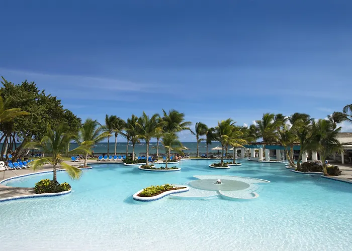 Dining options include nine restaurants offering a variety of cuisines such as Creole and American. Guests can enjoy breakfast buffet with made-to-order stations, and lunch options at the Jerk Hut beside the family pool. The restaurants are complemented by a poolside bar for refreshing drinks throughout the day.