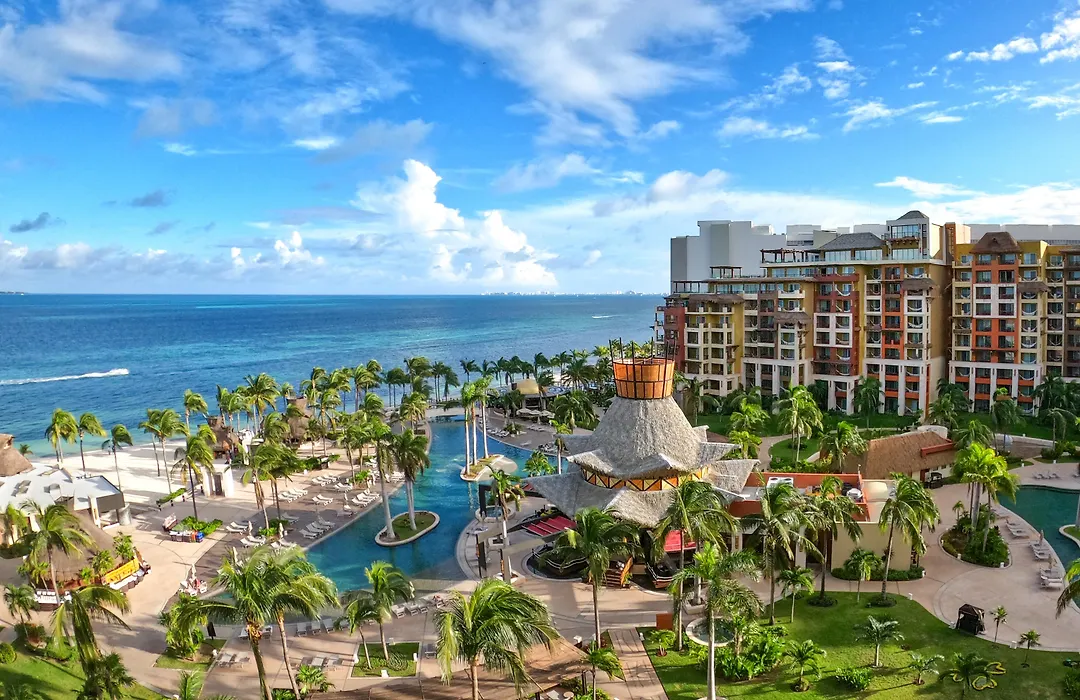 Villa Del Palmar Cancun Luxury Beach Resort & Spa offers a 5-star all-inclusive experience featuring spacious family suites, multiple dining options, and a large pool complex. This family-friendly resort provides a variety of activities for guests of all ages and boasts a AAA Four Diamond rating.