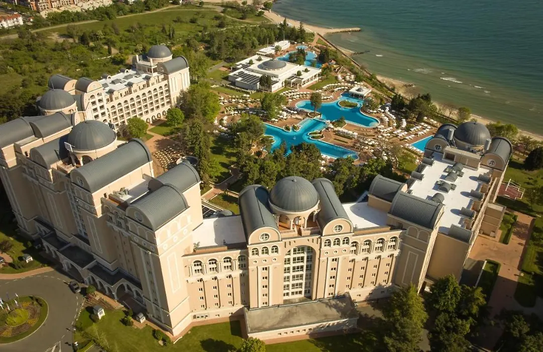 Dreams Sunny Beach Resort And Spa, a 5-star hotel, features a beachfront location with multiple leisure facilities including a water park, indoor pool, and fitness center. Guests can enjoy various dining options with five on-site restaurants and a children's playground.