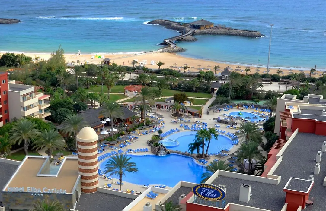 Elba Carlota Beach & Golf Resort, a 4-star hotel rated 8.3/10, is situated at the beachfront adjacent to the Fuerteventura Convention Centre. This family-friendly resort features a variety of dining options, a stunning pool area, and offers access to a casino.