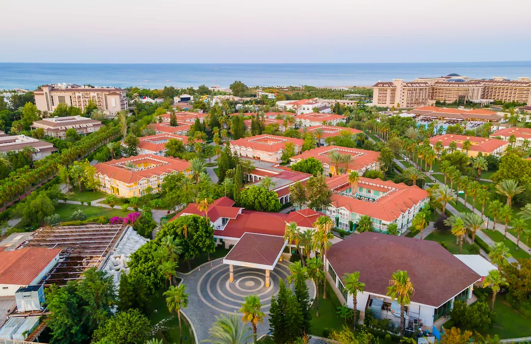 The resort is situated 18 km from the historical town of Side, 12 km from Manavgat, and 85 km from Antalya Airport. Local transportation includes dolmus (bus), offering easy access to nearby attractions such as Nashira Aquapark.
