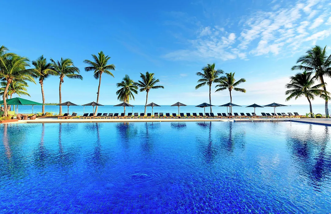 Dining options include KORO, an exclusive adults-only area with all-day dining and live music, and Maravu, which offers Asian dishes with views of the nightly Fijian torch lighting ceremony. The Deli provides on-the-go snacks, gourmet pizzas, and an extensive espresso menu, famous across Nadi for its coffee.