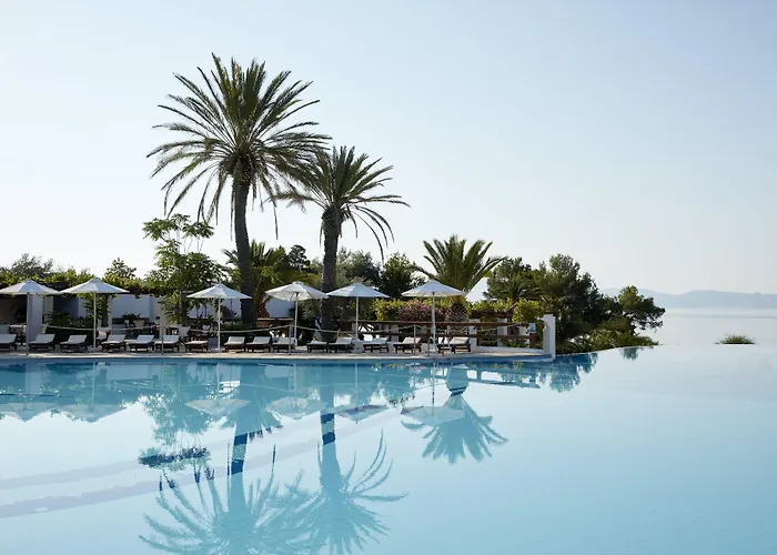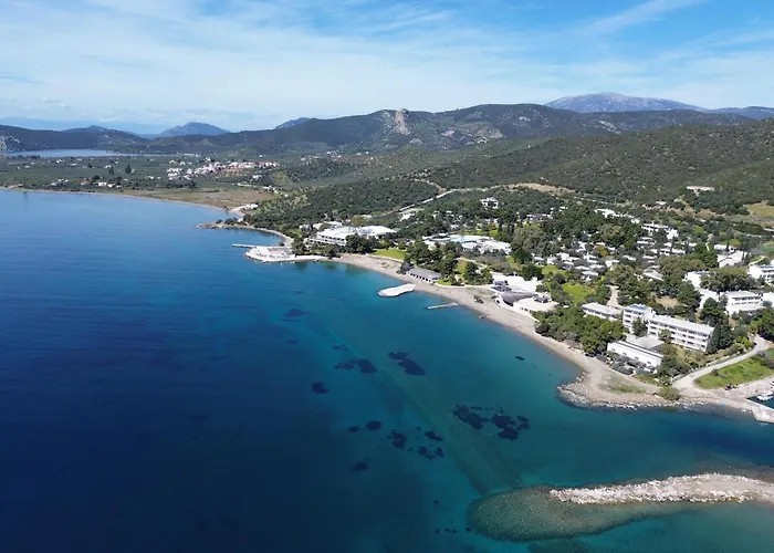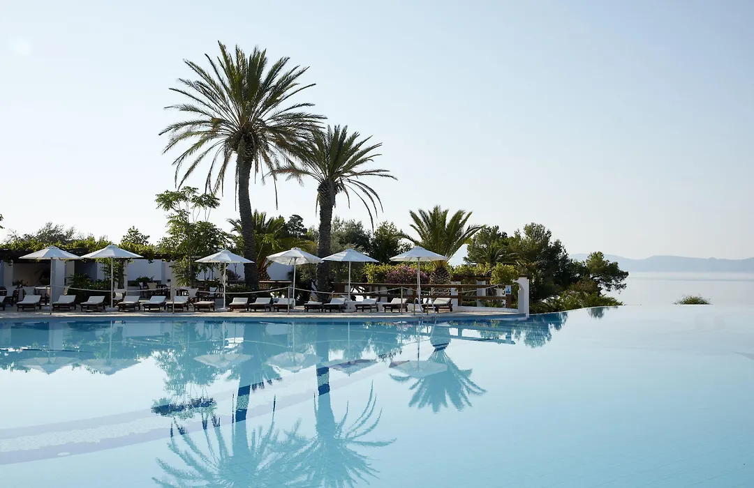 Hydra Beach Resort, a 5-star Thermisia hotel, features direct access to 3 exclusive beaches with crystal-clear waters. The resort offers multiple dining options, wellness facilities, and amenities suitable for families.