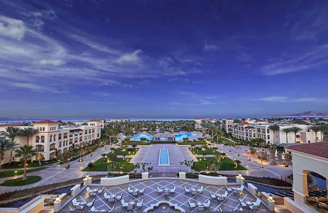 Jaz Mirabel Resort, a 5-star Sharm el-Sheikh hotel, features a combination of modern Tuscan architecture and Egyptian service, ideal for a family getaway. The resort offers access to a private beach, six outdoor pools, a spa with various treatments, and a diverse array of dining options including five on-site restaurants.
