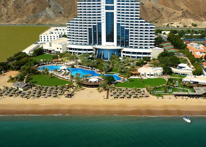 Le Meridien Al Aqah Beach Resort offers a family-friendly experience with panoramic views of the Indian Ocean and Hajar Mountains. This five-star beach hotel features the largest free-form swimming pool in the East Coast of Fujairah, a luxurious spa, and diverse dining options.