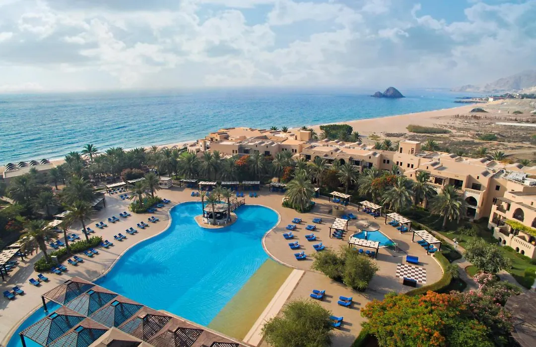 Miramar Al Aqah Beach Resort offers luxurious 5-star accommodations with over 200 meters of coastline on the Indian Ocean. The resort includes a thriving wellness center, multiple dining options, and facilities for water sports and activities. Ideal for families and couples, this hotel features traditional Arabian design paired with modern amenities.