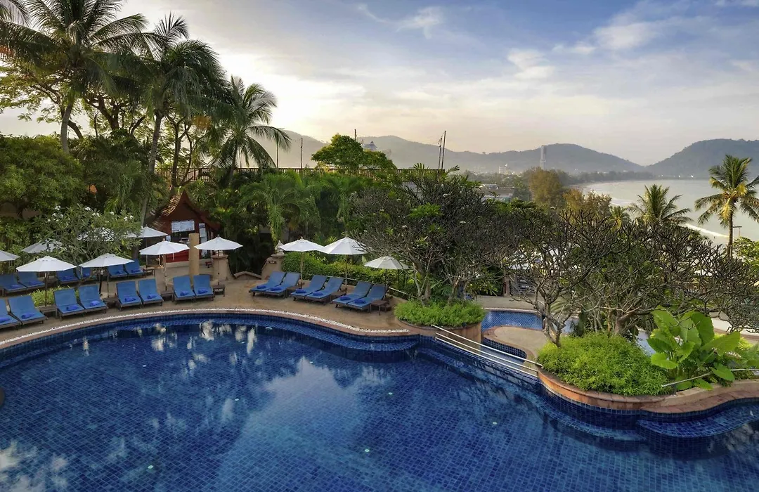 Novotel Phuket Resort, a 4-star hotel with an 8.2/10 Booking.com rating, offers modern amenities and scenic views of Patong Beach and the Andaman Sea. This family-friendly hotel features a three-tiered swimming pool, fitness center, and a variety of dining options.
