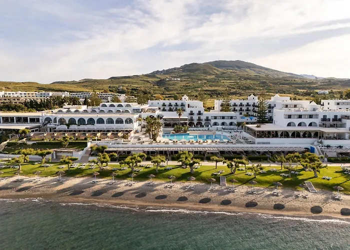 Oceanis Beach & Spa Resort, a 5-star Psalidi (Kos) hotel with an 8.9/10 rating on Booking.com, features direct access to one of Kos's most beautiful beaches, landscaped gardens, and a variety of leisure amenities. This family-friendly property offers luxury accommodations, numerous dining options, and wellness facilities for a comprehensive vacation experience.