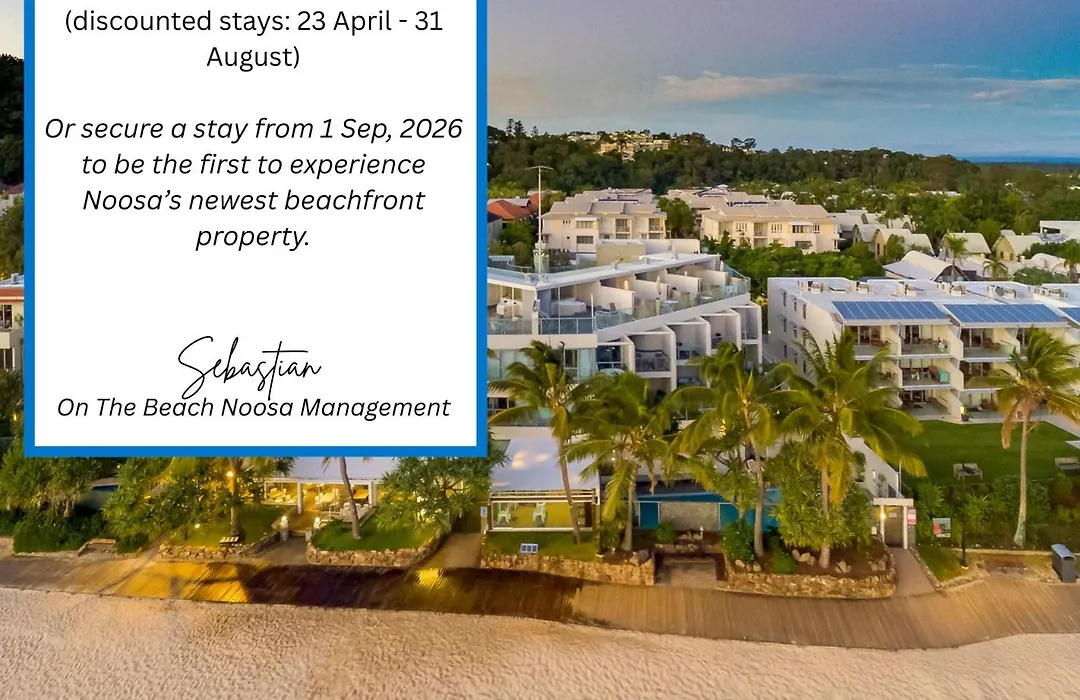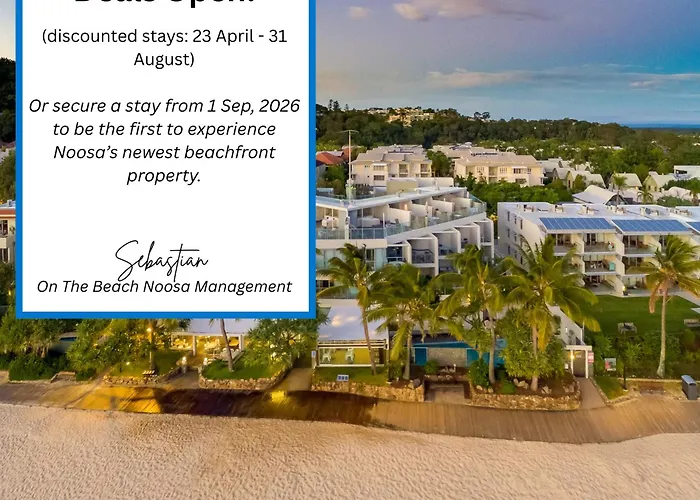 On The Beach Noosa Resort is a five-star beachfront property offering luxurious apartments and penthouses with ocean views. Guests enjoy direct beach access, a saltwater pool, and proximity to Hastings Street's restaurants and shops.
