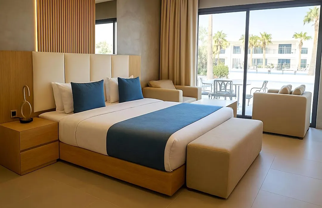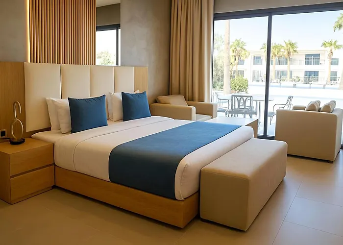 Palma Beach Resort & Spa, a 3-star hotel rated 8.7/10 on Booking.com, features upscale amenities set along the picturesque Al Khor Bay. This resort offers a private beach area, three outdoor swimming pools, and a full-service spa, catering to relaxation and leisure in a unique Ancient Egyptian design.
