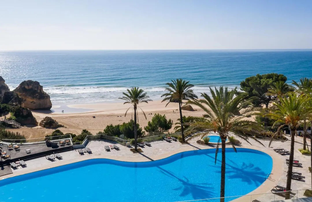 Pestana Alvor Praia Premium Beach & Golf Resort, a 5-star hotel with an 8.2/10 rating on Booking.com, features a direct access elevator to Três Irmãos Beach. Guests can enjoy multiple swimming pools, a wellness center, and various dining options.