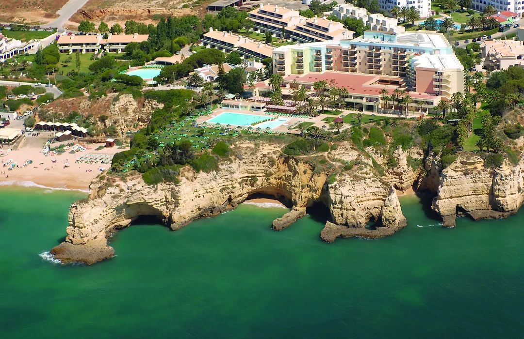 Pestana Viking Beach & Spa Resort is a 4-star clifftop hotel offering stunning views over the Atlantic, located just 2 minutes on foot from Senhora da Rocha beach. The hotel features extensive amenities, including multiple swimming pools, a wellness center, and two restaurants. A kids' club and direct beach access ensure family-friendly accommodations.