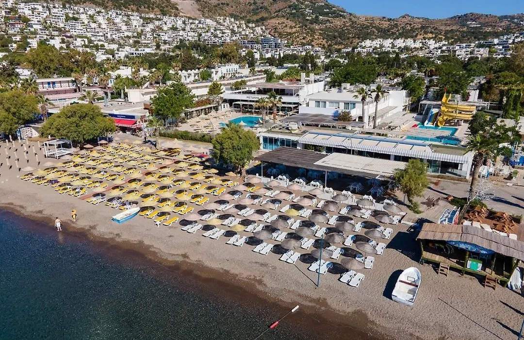 Petunya Beach Resort, a 4-star hotel with a 9.3/10 Booking.com rating, offers an All-Inclusive experience with a private beach and two pools with waterslides, catering to families and vacationers. It showcases Turkish hospitality alongside the crystal-clear Aegean sea.