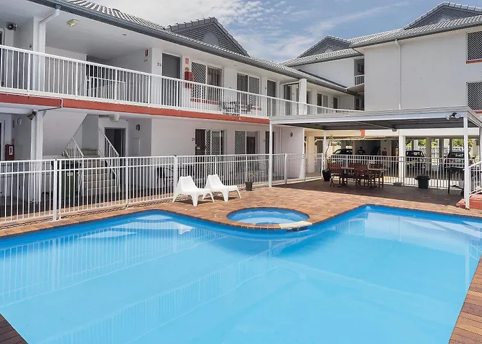 Recreational amenities at Sunshine Beach Resort include an outdoor swimming pool and spa pool. The hotel is surrounded by various activities, such as surfing and outlet shopping, with Burleigh Head National Park offering opportunities for nature exploration.